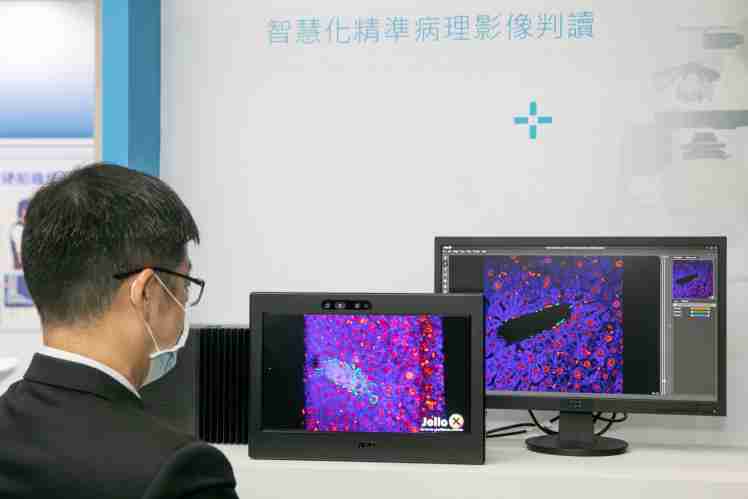 达擎携手捷络生技与凌华科技合作展出 3D 病理检测影像解决方案,,,透过 AI 技术呈现高分辨率病理影像,,,实现精准诊断 |