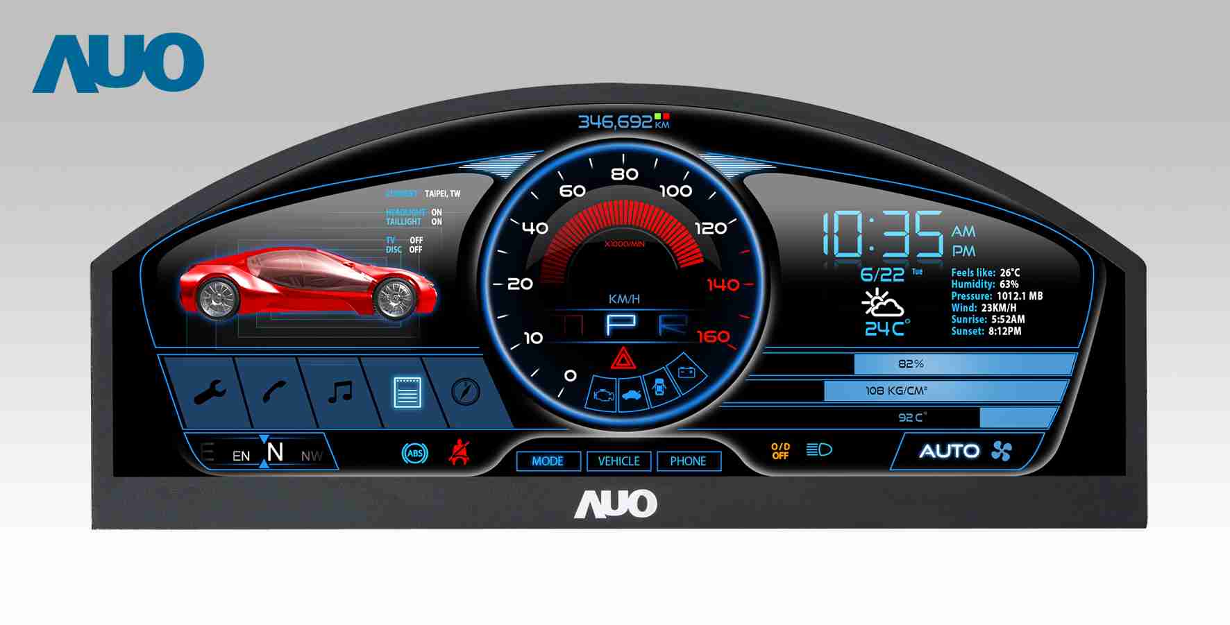 PA直营 12.3吋超高解析异型切割车用面板,,拥有流线外观及精细画质
